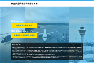 - ・このサイトは、航空安全プログラムの適用に伴い、義務報告制度では捕捉しにくい民間航空の安全に関する情報を幅広く収集するために設置されたものです。